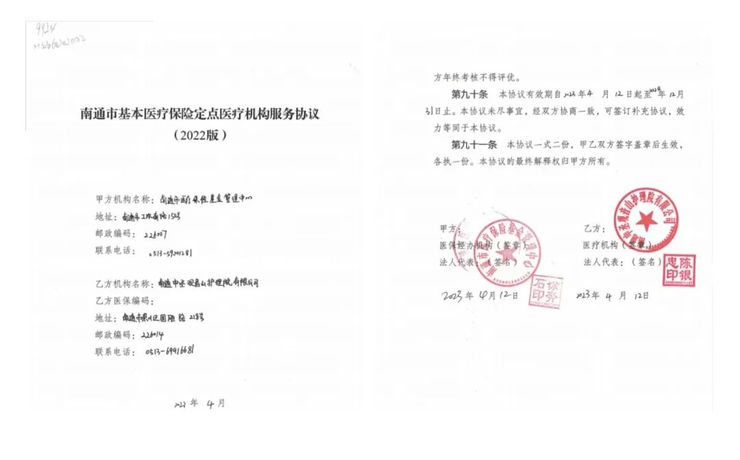 簽訂南通市基本醫(yī)療保險(xiǎn)定點(diǎn)醫(yī)療機(jī)構(gòu)服務(wù)協(xié)議