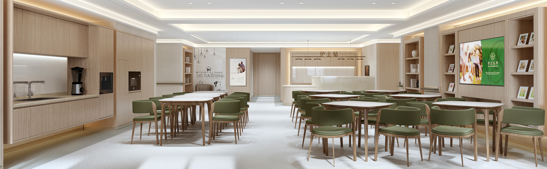 融入“比家更溫暖”的服務(wù)理念,既為長者提供專業(yè)、適老的照料空間,也為長者塑造更加舒適、靈動(dòng)的居住體驗(yàn)。設(shè)有閱讀區(qū)、書畫區(qū)、棋牌室等多功能活動(dòng)區(qū),各照料單元均設(shè)有就餐區(qū)及活動(dòng)區(qū),滿足老人共進(jìn)三餐、日?;顒?dòng)及情感交流的需求。